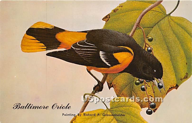 Oriole in State Bird, Maryland Postcard - Unused Grade: 1 Size: R - Regular size: Approx 3 1/2 X 5 1/2 inch (9 cm X 14 cm) Grading Scale: Grade 1 = Perfect corners Grade 2 = Very Minimal corner wear, no crease ... Read More