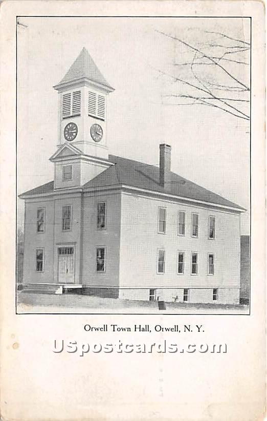 Orwell Town Hall Orwell NY Year Date of Postcard, or Postal Used / Year Used: Postal Used Unknown Grade: 3 Product Size: R Product Type: 4 Grading Scale: Grade 1 = Perfect corners Grade 2 = Very Minimal corn ... Read More