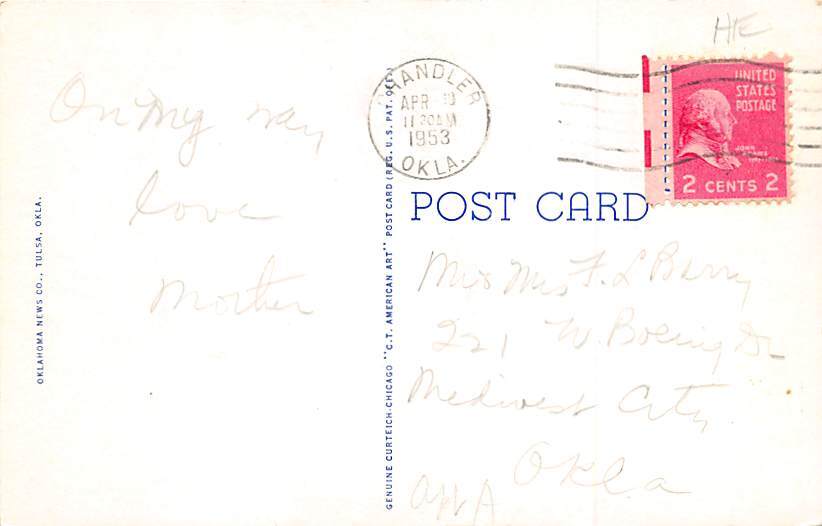 Osage Indian Dancers Postcard 1953, Grade: 2 - postal marking on front, , Size: Regular Size Postcard - approximately 3 1/2 inch x 5 1/2 inch (9 CM x 14 CM) Grading Scale: Grade 1 = Perfect corners Grade 2 = Ve ... Read More