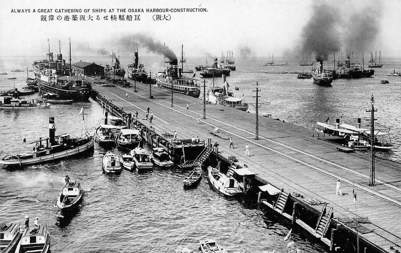 Osaka Harbour Construction, Japan Steamships c1910s Vintage Postcard