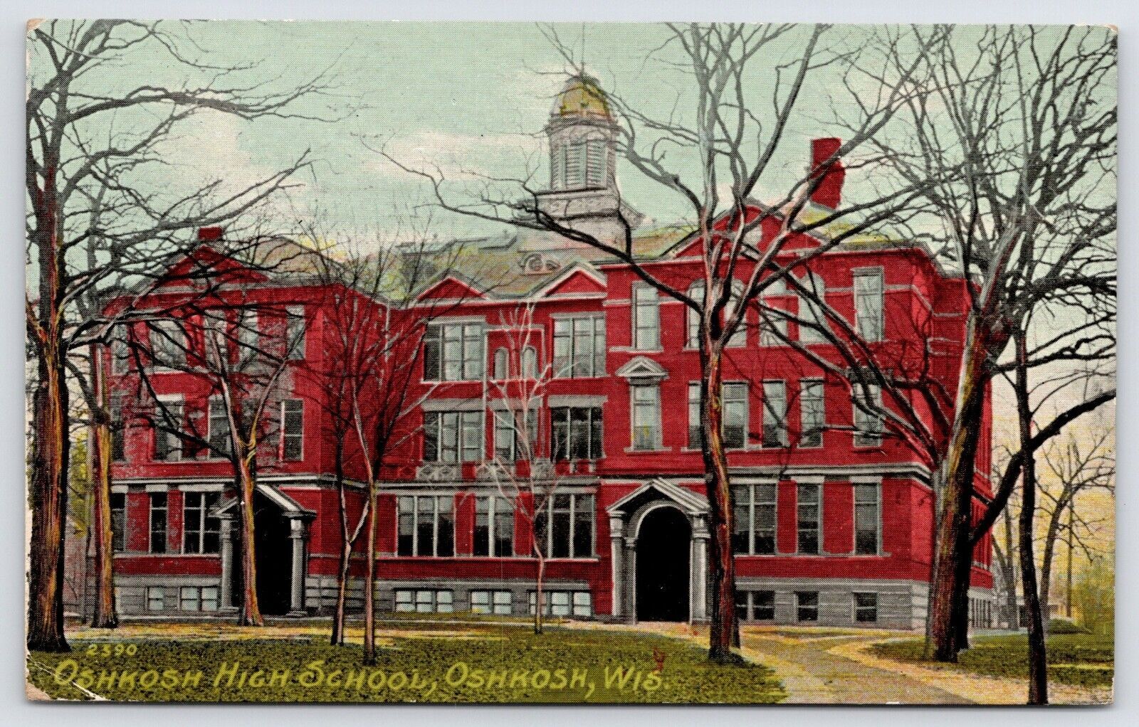 Oshkosh High School~Huge Cupola~Arch Doorways~Spring Trees 1911 Postcard