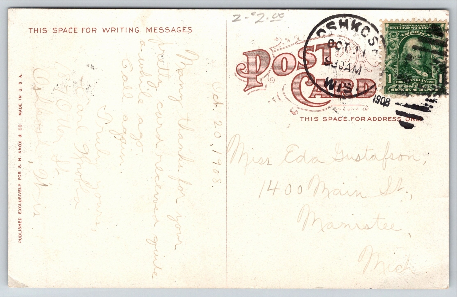 Oshkosh Wisconsin~North Park Drives~1908 Postcard