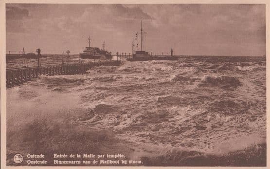 Antique early 1900s postcard of a storm in Ostende at the mailboat entrance used and whilst lightly aged in outstanding condition bw0