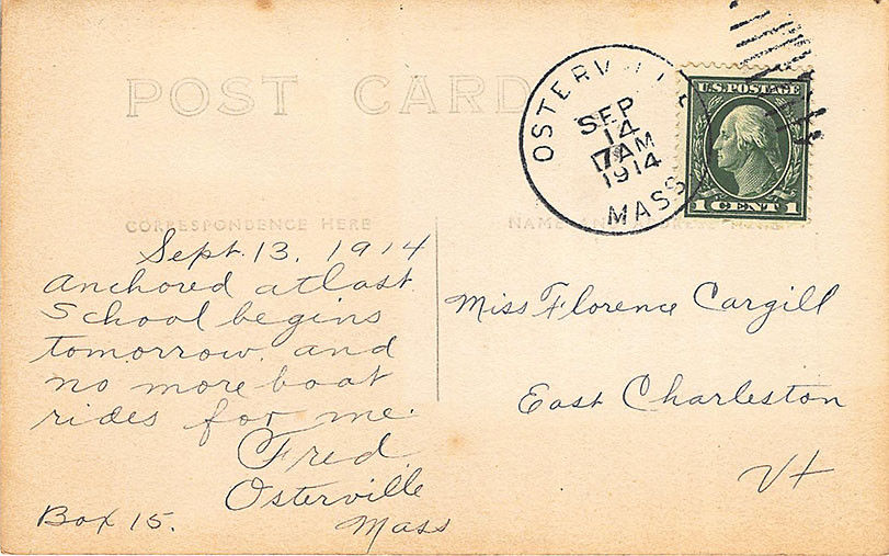 Osterville MA Cape Cod School House in 1914. Please see Scan(s) for condition. Click here for more Postcards. Please see shipping and handling information. Click Here For Our Hip Store For Other Great Values. Shipping Discount: .25 cents per additional post card for all postcard lots won in one day (take discount for both auctions & Hip store ). To receive combined shipping on multiple lots won, Please ask me to email you an invoice or wait for invoice before you make payment. inkfrog terapeak