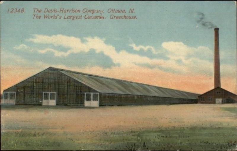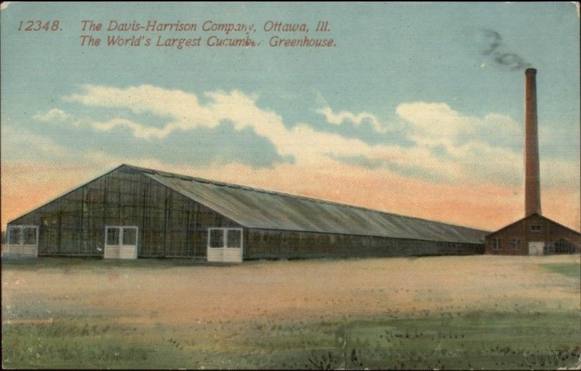 Ottawa IL Davis-Harrison Co Cucumber Greenhouse c1910 Postcard