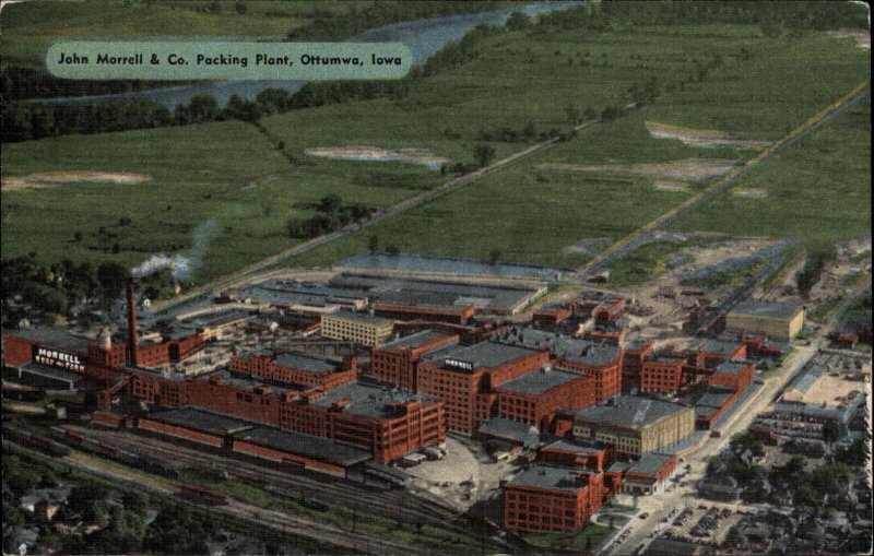 Ottumwa Iowa IA John Morrell & Co Packing Plant Factory c1940s Linen Postcard