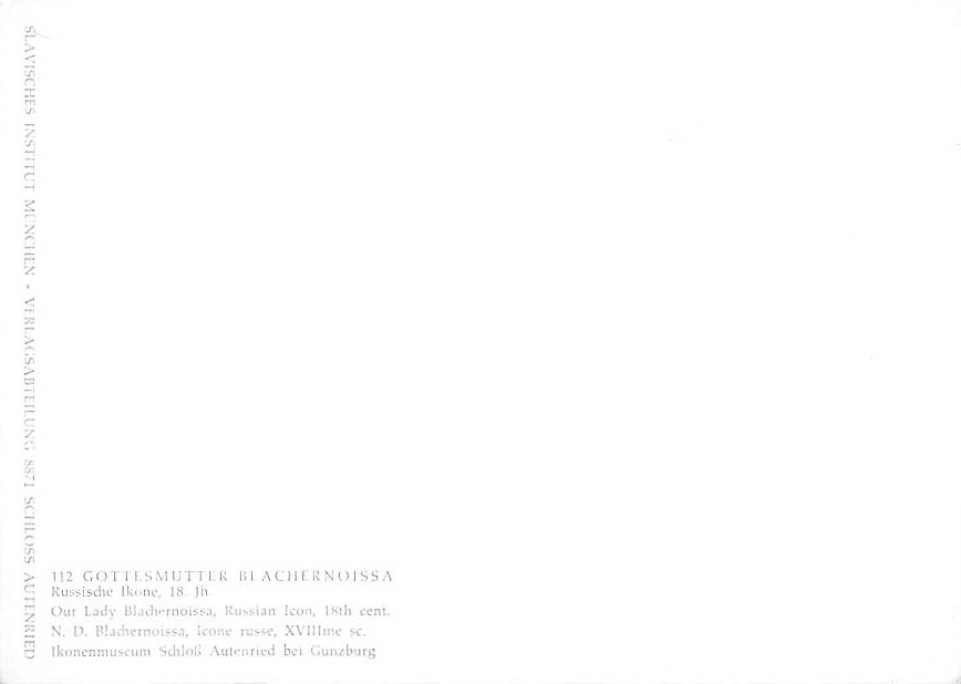 Our Lady Blachernoissa - Russische Ikone Grade: 1 Category: Continental Size Postcard, Approx 4 in x 6 in (10 cm x 15.25 cm) Product Size: Continental size: 4X6 inches (10.5 cm x 15 cm) Grading Scale: Grade 1 ... Read More