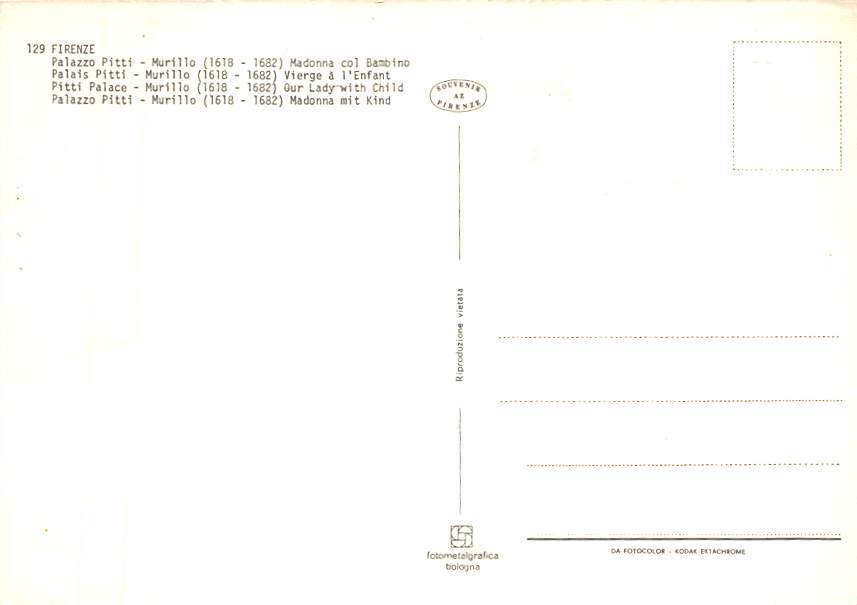 Our Lady With Child Our Lady With Child, Firenze Postcard - View Images Grade: 1 Size: {{Product Field 5 (Size Regular or Continental)}} - Continental Size Postcard - approximately 4 inch X 6 inch (15 CM X 10.5 C ... Read More