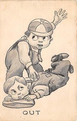 Out Out Base Ball Baseball Post Card Postal Date: writing on back Grade: 3 Size: Regular Size Postcard - approximately 3 1/2 inch x 5 1/2 inch (9 CM x 14 CM) Grading Scale: Grade 1 = Perfect corners Grade 2 = ... Read More