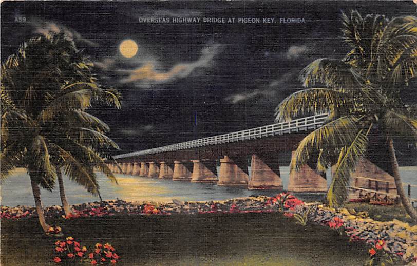Overseas Highway Bridge at Pigeon Key Key West FL Postcard - 1940
