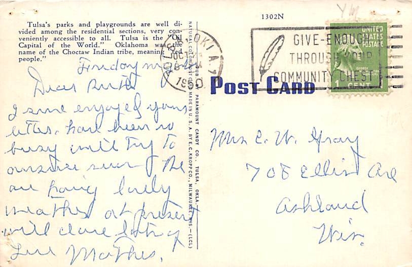 Owen Park Scene Tulsa OK Grade: Size: Regular Size Postcard - approximately 3 1/2 inch x 5 1/2 inch (9 CM x 14 CM) Grading Scale: Grade 1 = Perfect corners Grade 2 = Very Minimal corner wear, no creases Grade 3 ... Read More