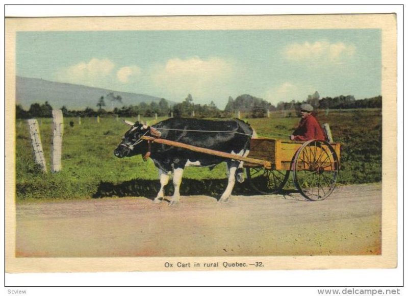 Ox Cart , Quebec , Canada , 30-40s #5 :: Postcard, 3.5" by 5.5", Litho , EX