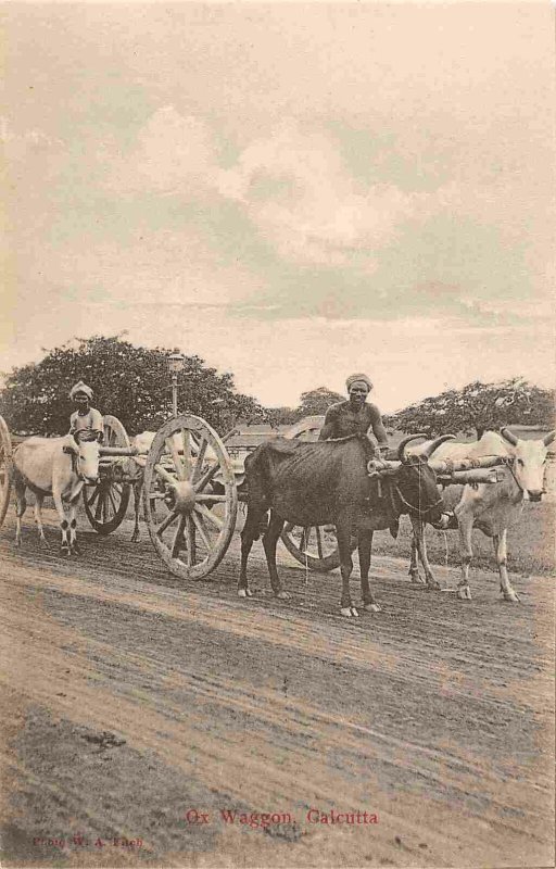 Ox Wagon Calcutta British India 1910c postcard
