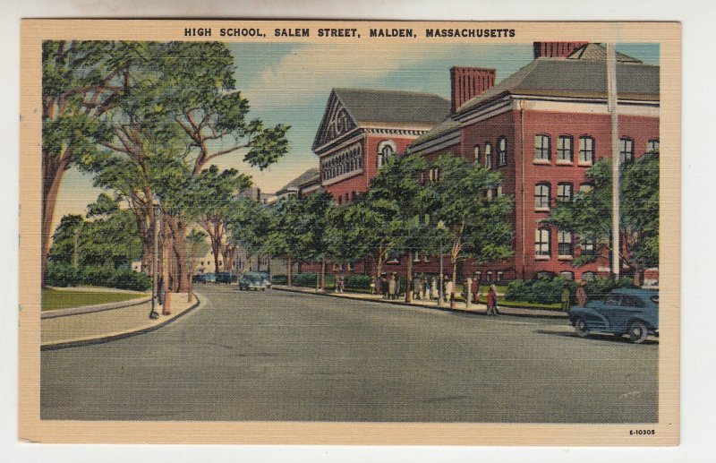 P2192 vintage postcard high school salem street malden mass cars people etc