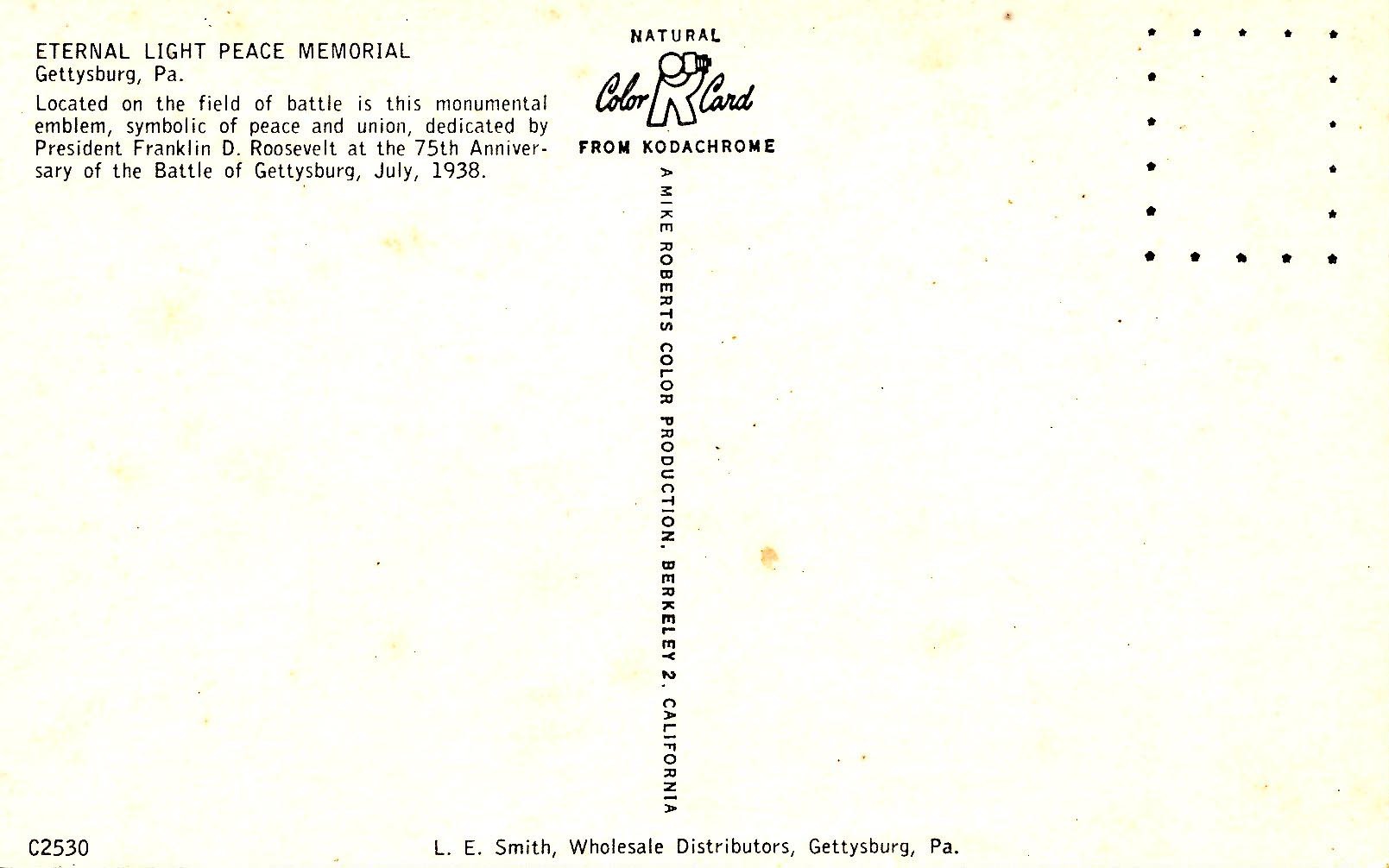 PA - Gettysburg. Eternal Light Peace Memorial