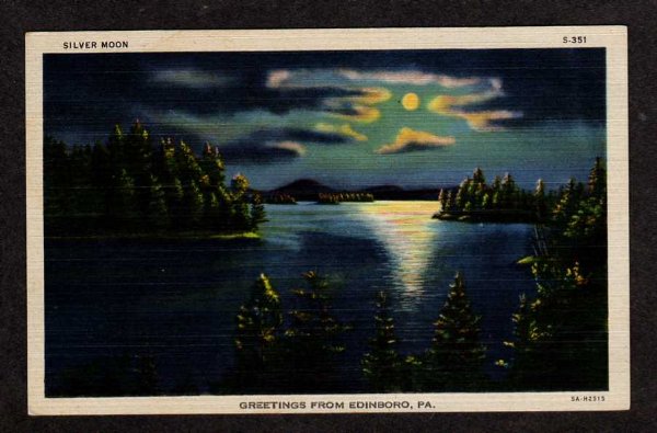 PA Greetings from EDINGORO PENN Postcard Moonlight Postcard Pennsylvania