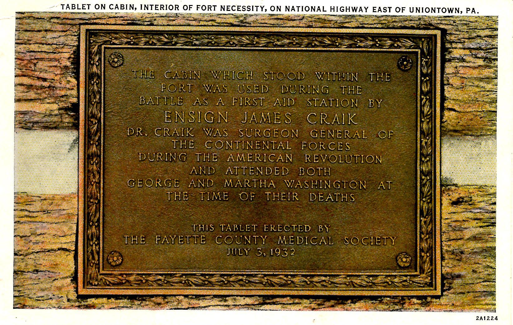 PA - Uniontown, Fort Necessity. Tablet on Cabin