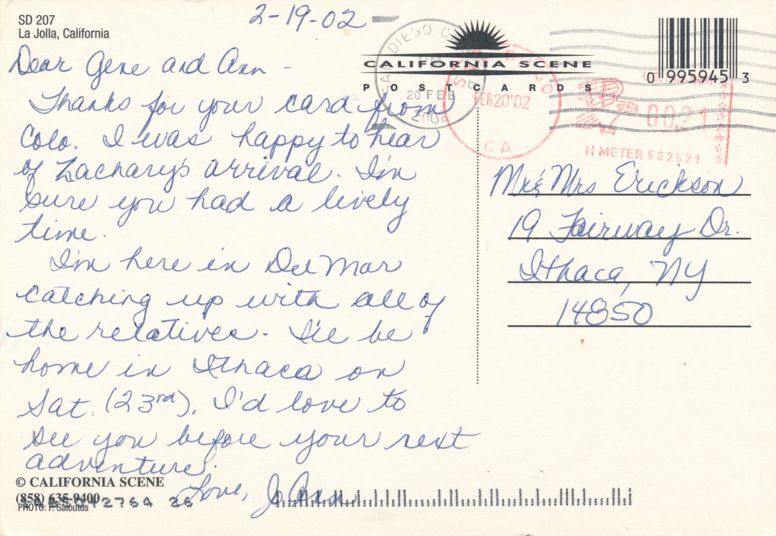 Postmarked at San Diego CA on February 20, 2002.