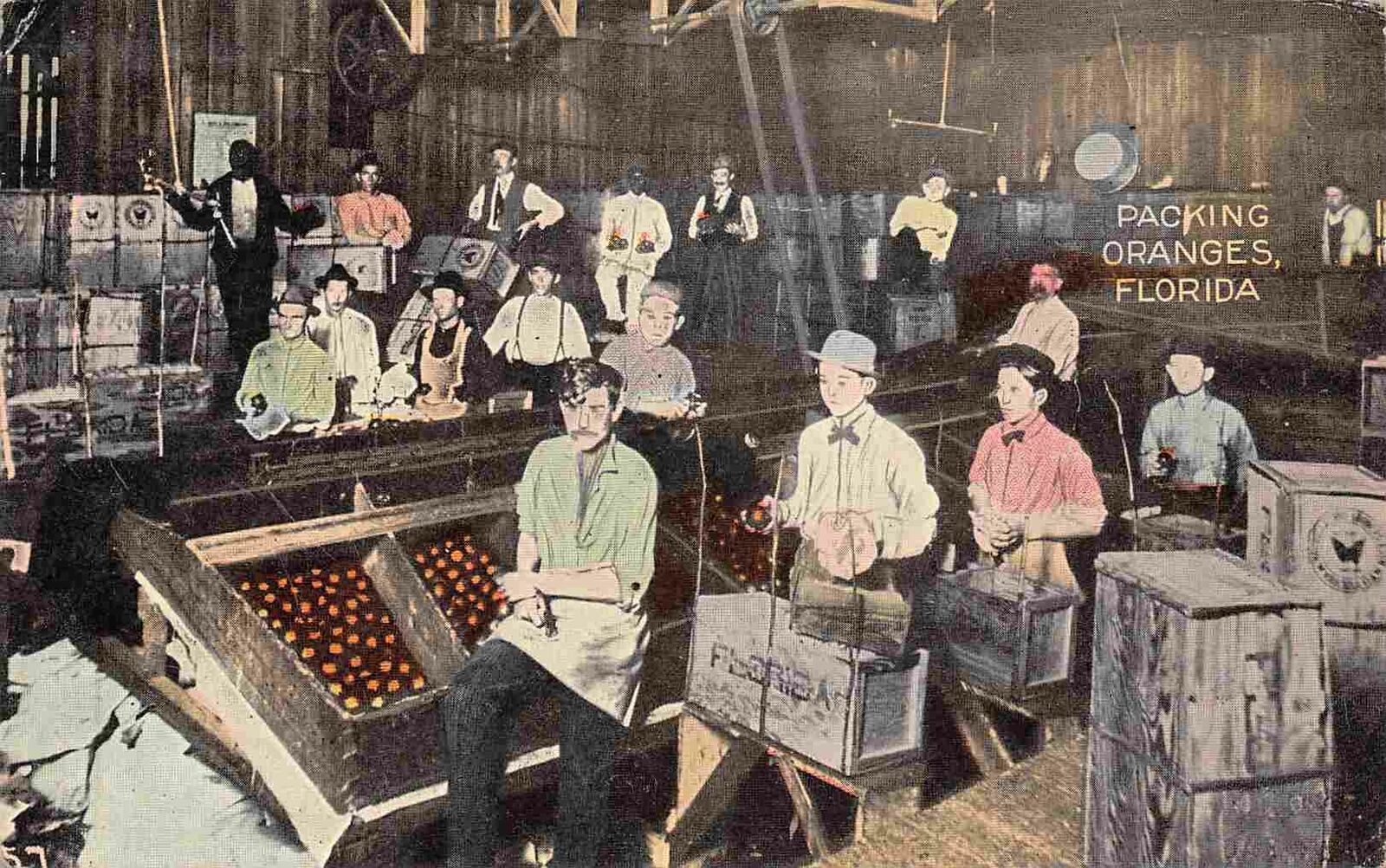 Packing Oranges in Packing House Florida 1920 postcard