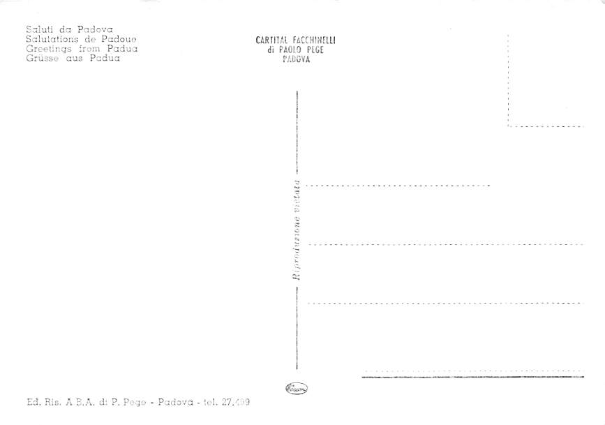 Padova - Padua Grade: 1 Category: Continental Size Postcard, Approx 4 in x 6 in (10 cm x 15.25 cm) Product Size: Continental size: 4X6 inches (10.5 cm x 15 cm) Grading Scale: Grade 1 = Perfect corners Grade 2 = ... Read More