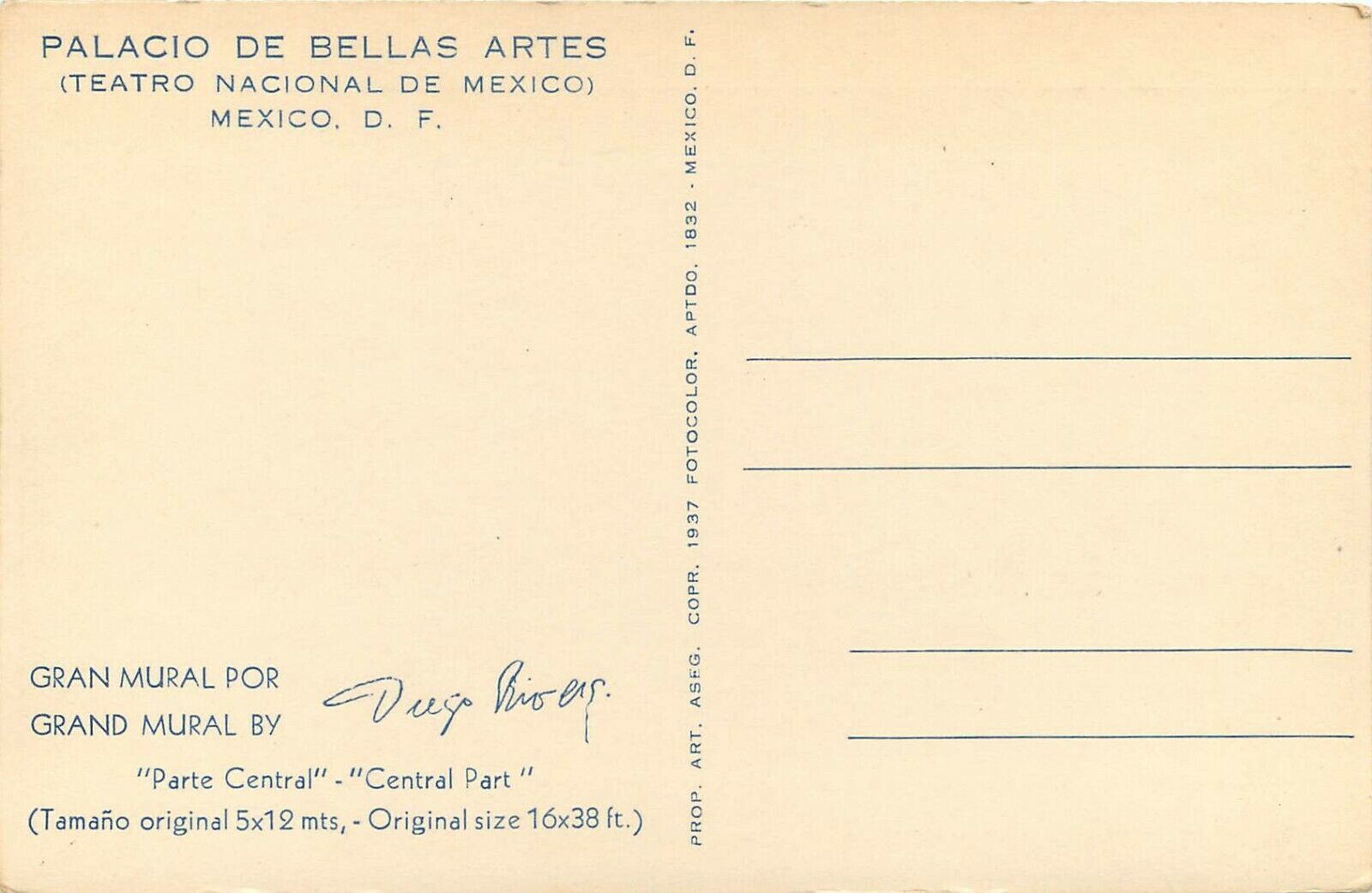 Palacio Bellas Artes Postcard Diego Rivera Mural Social Issues Industry Mexico