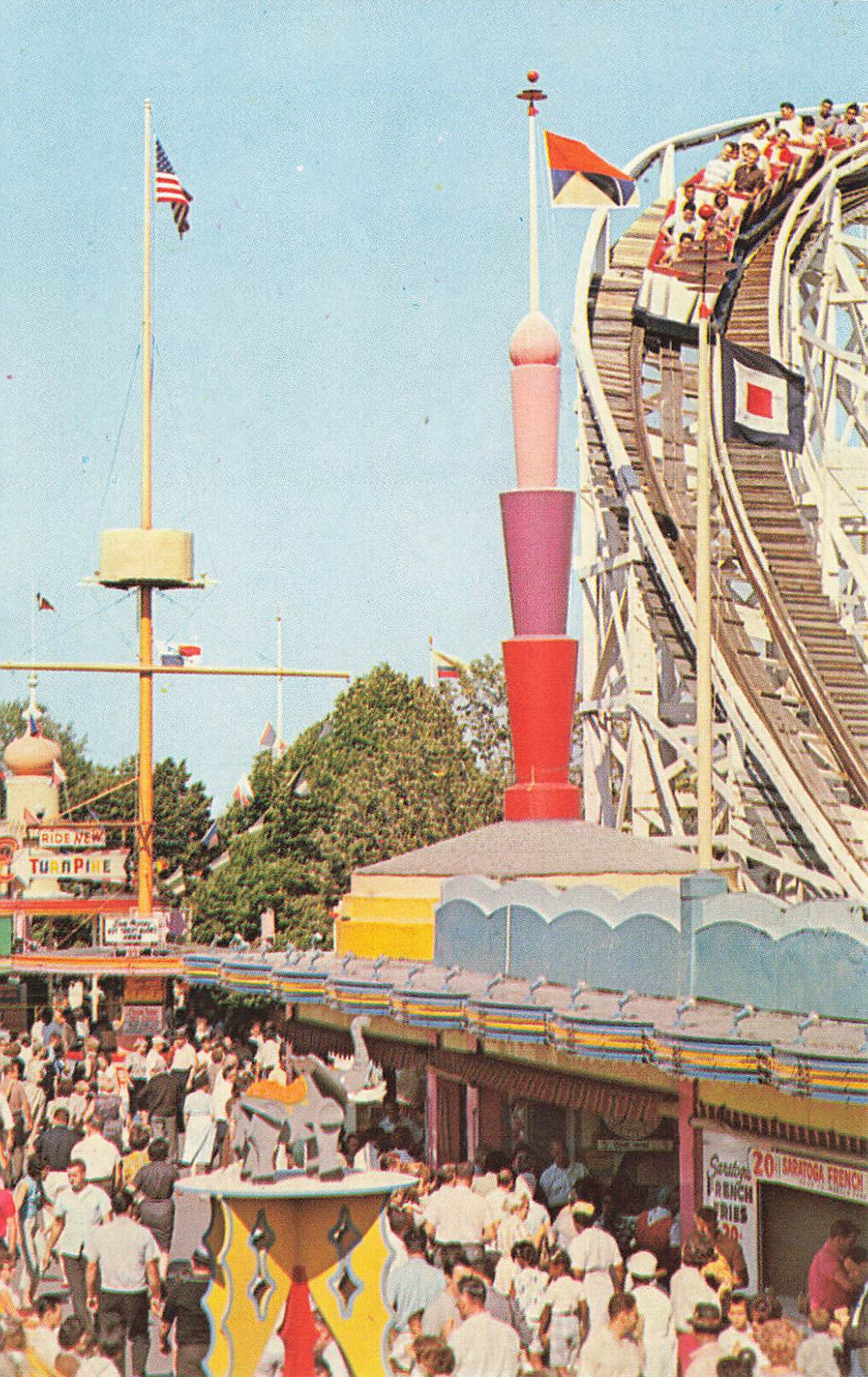Palisades Amusement Park NJ Midway & Cyclone Roller Coaster, Postcard
