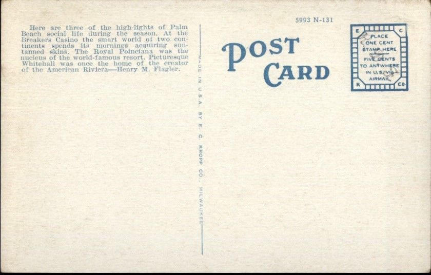 Palm Beach FL Aerial View Breakers Casino c1920 Postcard