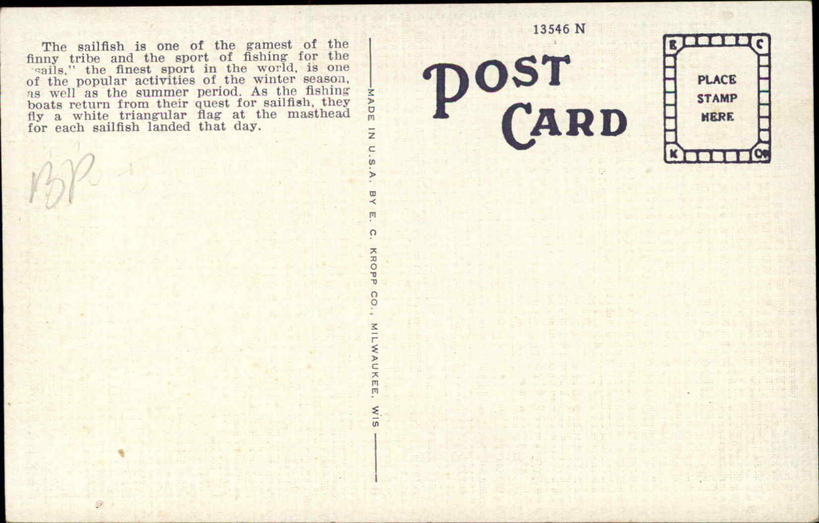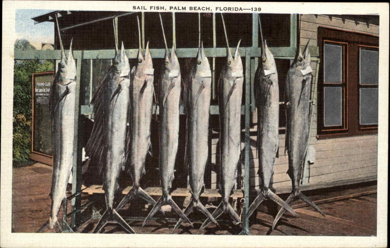 PALM BEACH FL Sail Fish SAILING Old Postcard