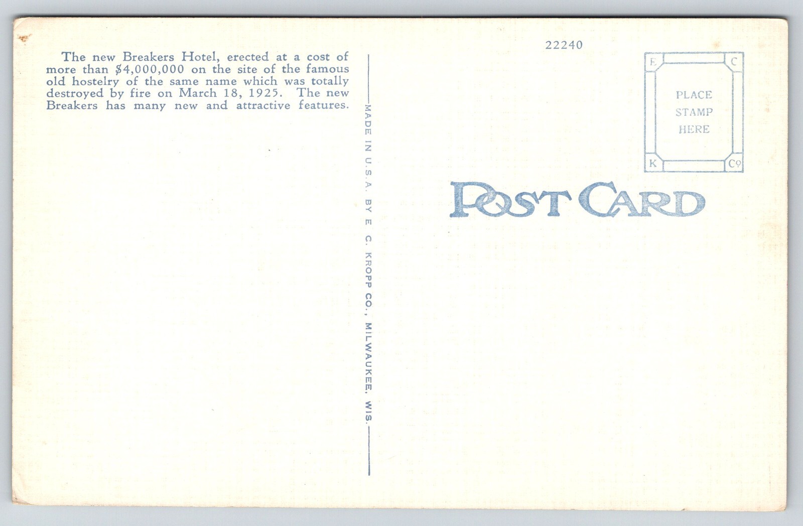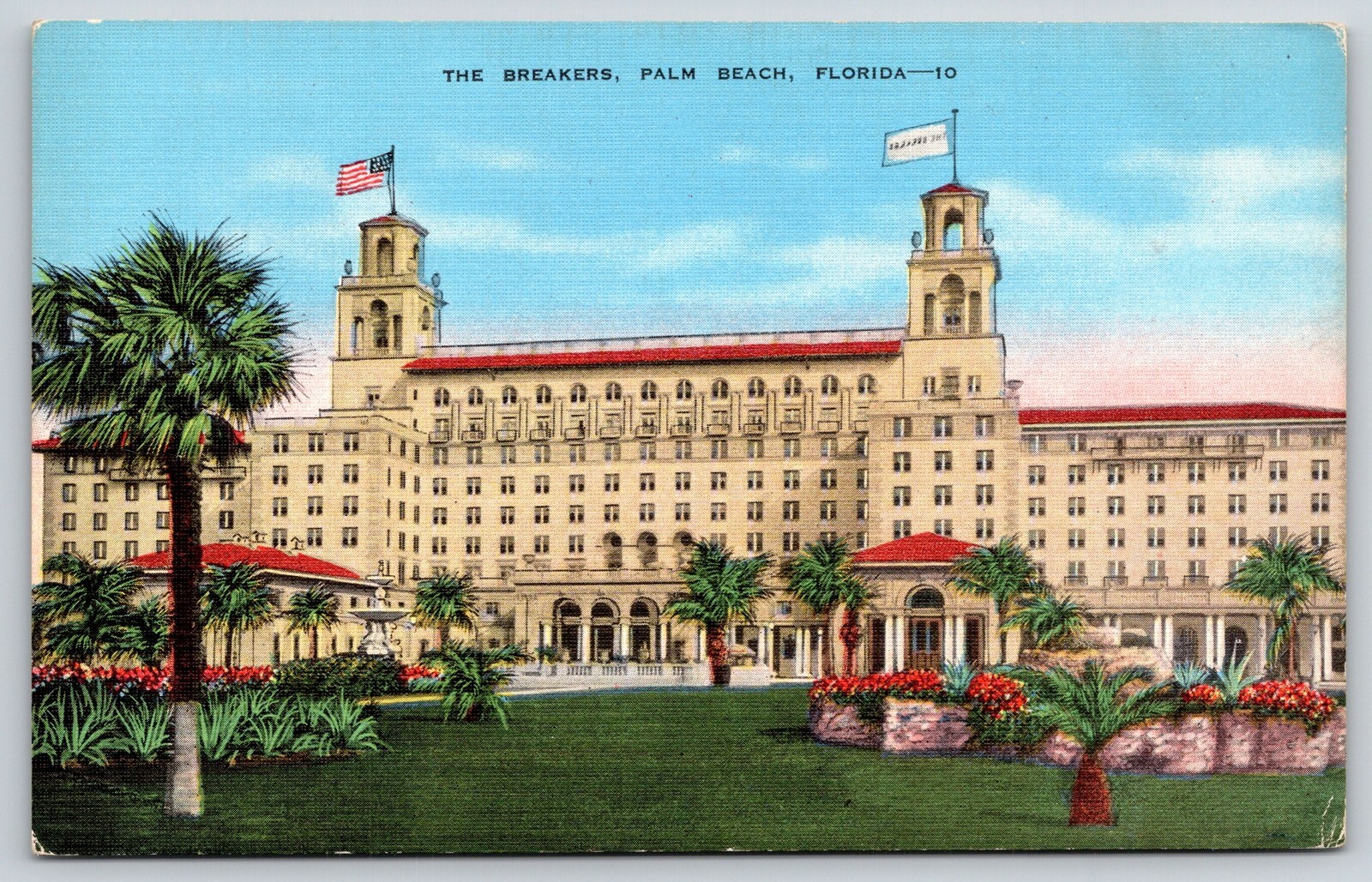 Palm Beach Florida~The Breakers Hotel~Flag~Renaissance Revival~Linen Postcard
