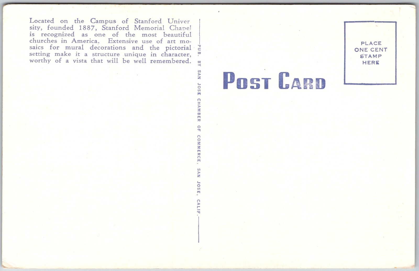 Palo Alto California CA, Memorial Church, Stanford University Building, Postcard