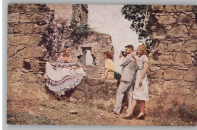 Pan Am Postcard-Lady Posing..Spanish Cathedral-Panama