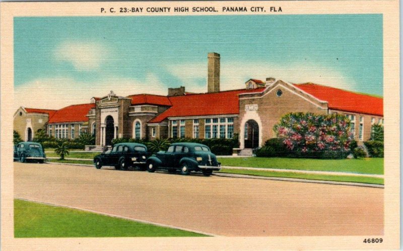 PANAMA CITY, Florida FL ~ BAY COUNTY HIGH SCHOOL c1940s Linen Postcard