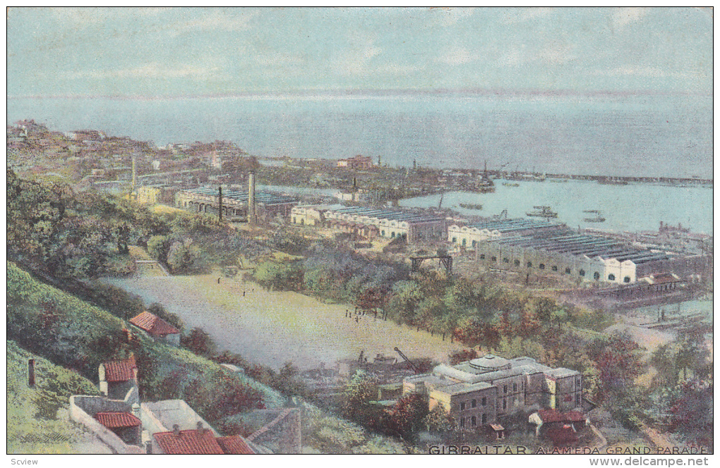 Panorama, Alameda Grand Parade, Gibraltar, PU-1913 :: Antique (Vintage) Original Postcard, Size 3.5" by 5.5", Litho, VG+, WOB.
