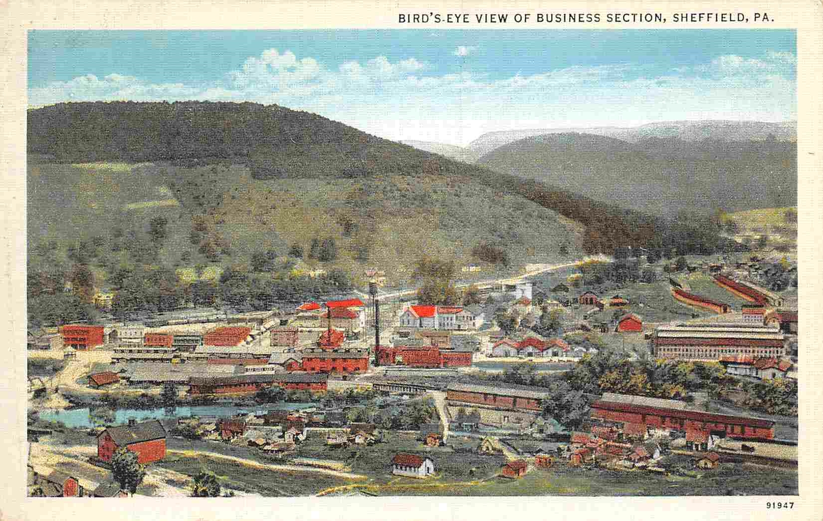 Panorama Business District Sheffield Pennsylvania 1950s linen postcard