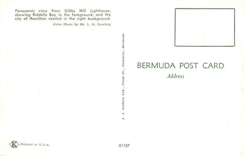 Panoramic View From Gibbs Hill Lighthouse Bermuda Postcard Postal Date: {{Product Field 4 ( Postal Used, Unused)}} Grade: 1 Size: Regular Size Postcard - approximately 3 1/2 inch x 5 1/2 inch (9 CM x 14 CM) Gr ... Read More