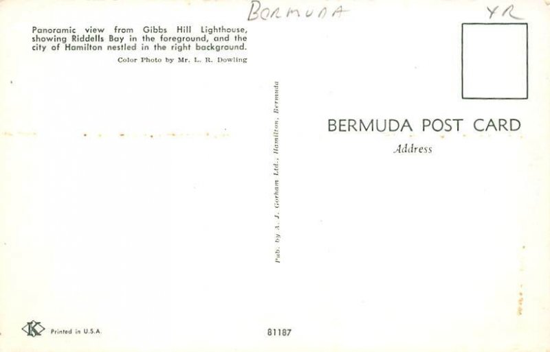 Panoramic View From Gibbs Hill Lighthouse Bermuda Postcard Postal Date: {{Product Field 4 ( Postal Used, Unused)}} Grade: 1 Size: Regular Size Postcard - approximately 3 1/2 inch x 5 1/2 inch (9 CM x 14 CM) Gr ... Read More