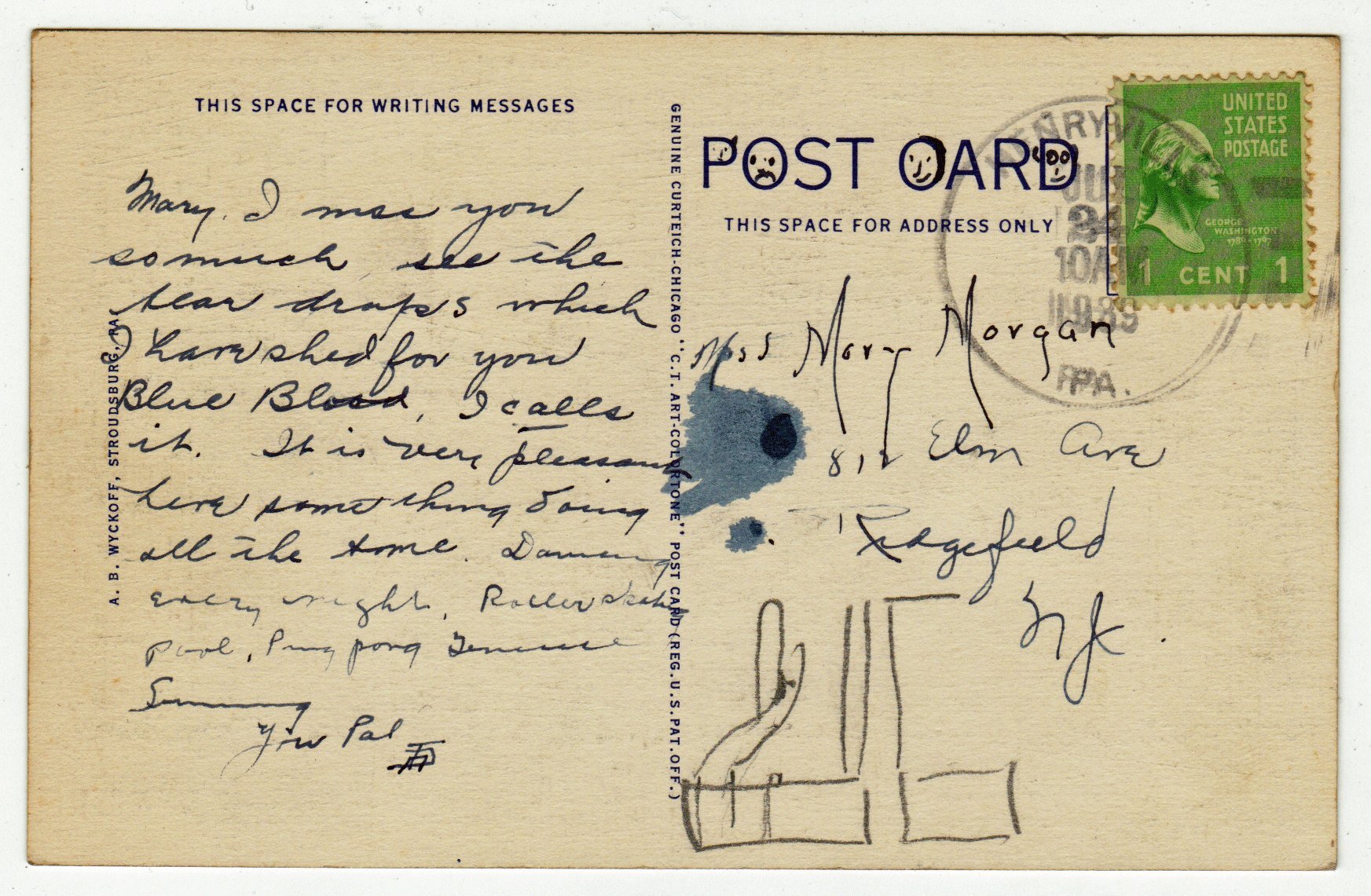 Postcards are shown from Actual Scan - Post Marked (origianlly seems to be 1939, and then over Stamped in 1989) in Very Good Condition..