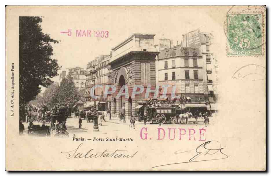 Paris - 10 - Porte Saint-Martin - G Dupre - 1903 - Old Postcard
