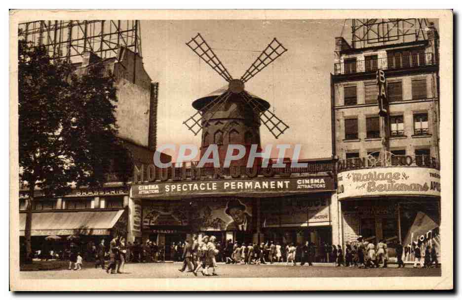 Paris - 18 - The Red Moulion red mill - Old Postcard