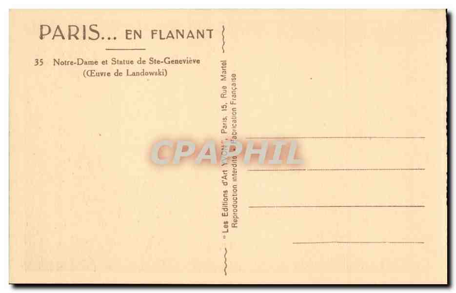 Paris - 4 - Notre Dame and Ste Genevieve Statue Old Postcard