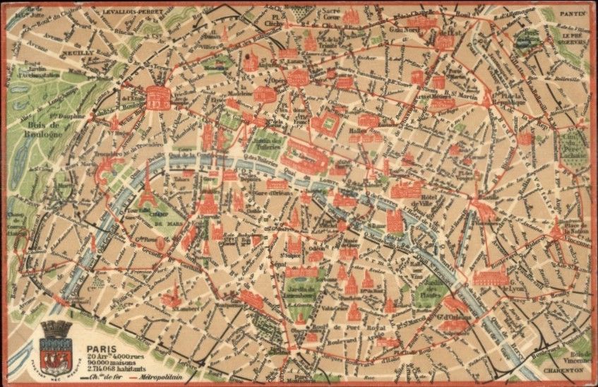 Paris - Colorful Map c1915 Postcard