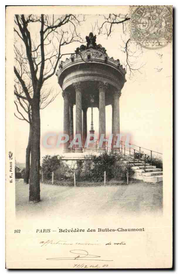 Paris Old Postcard Belvedere Buttes Chaumont