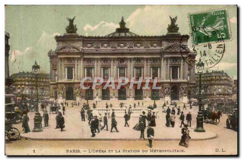 Paris Old Postcard L & # 39opera and metropolitan station (metro)