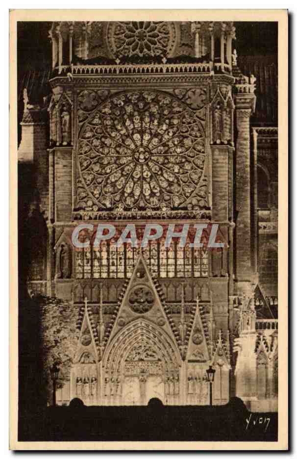 Paris Old Postcard Notre Dame illuminated Big rosette
