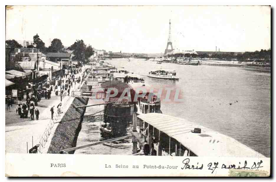 Paris Old Postcard The Seine at the bridge the day (Eiffel Tower)