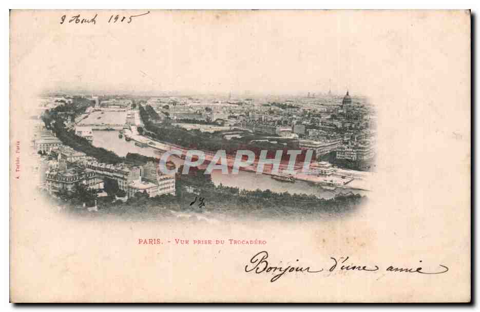 Paris Old Postcard View from the Trocadero