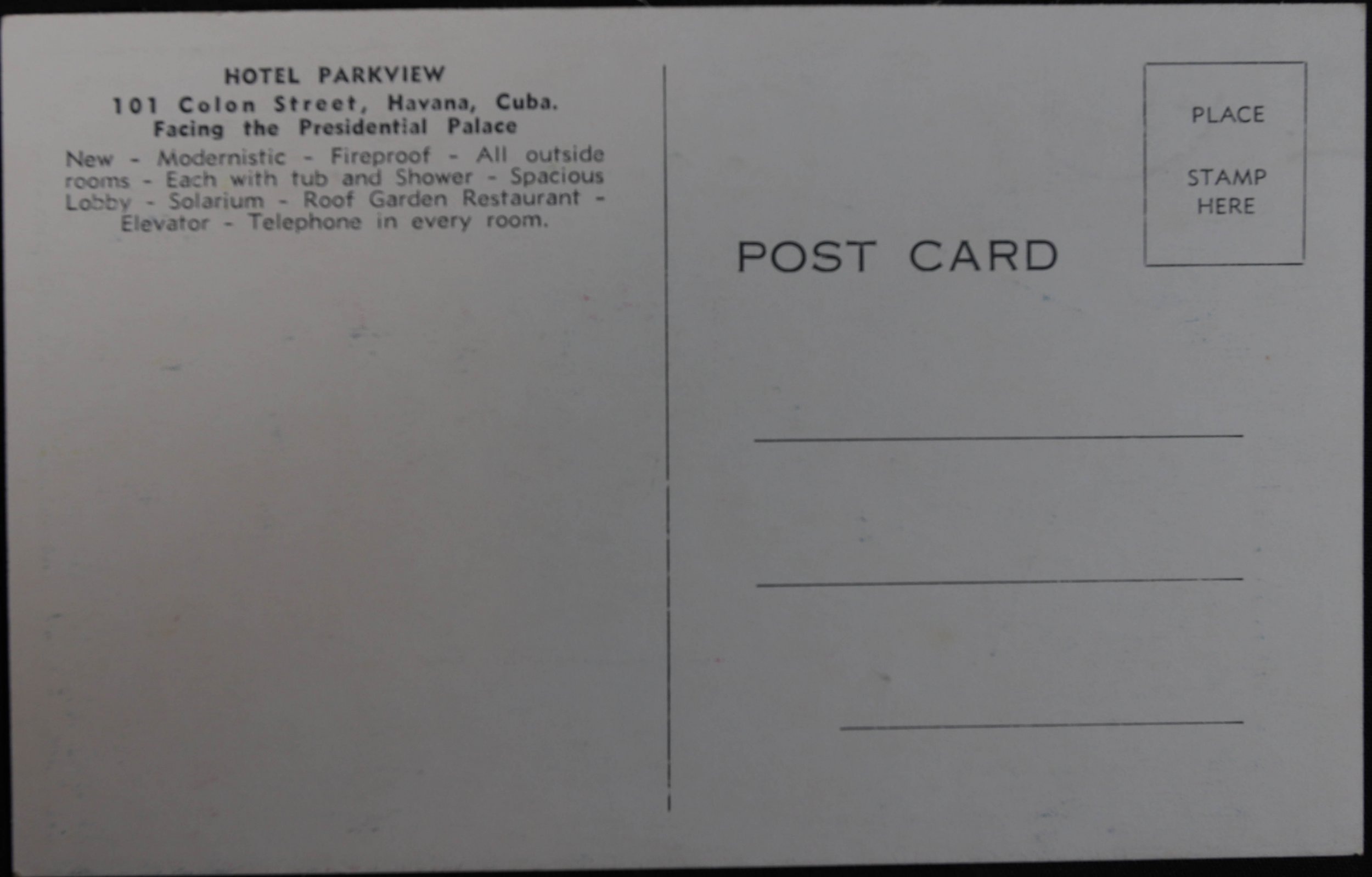 Hotel Parkview, Havana, Cuba. Facing the Presidential Palace.Seller Information