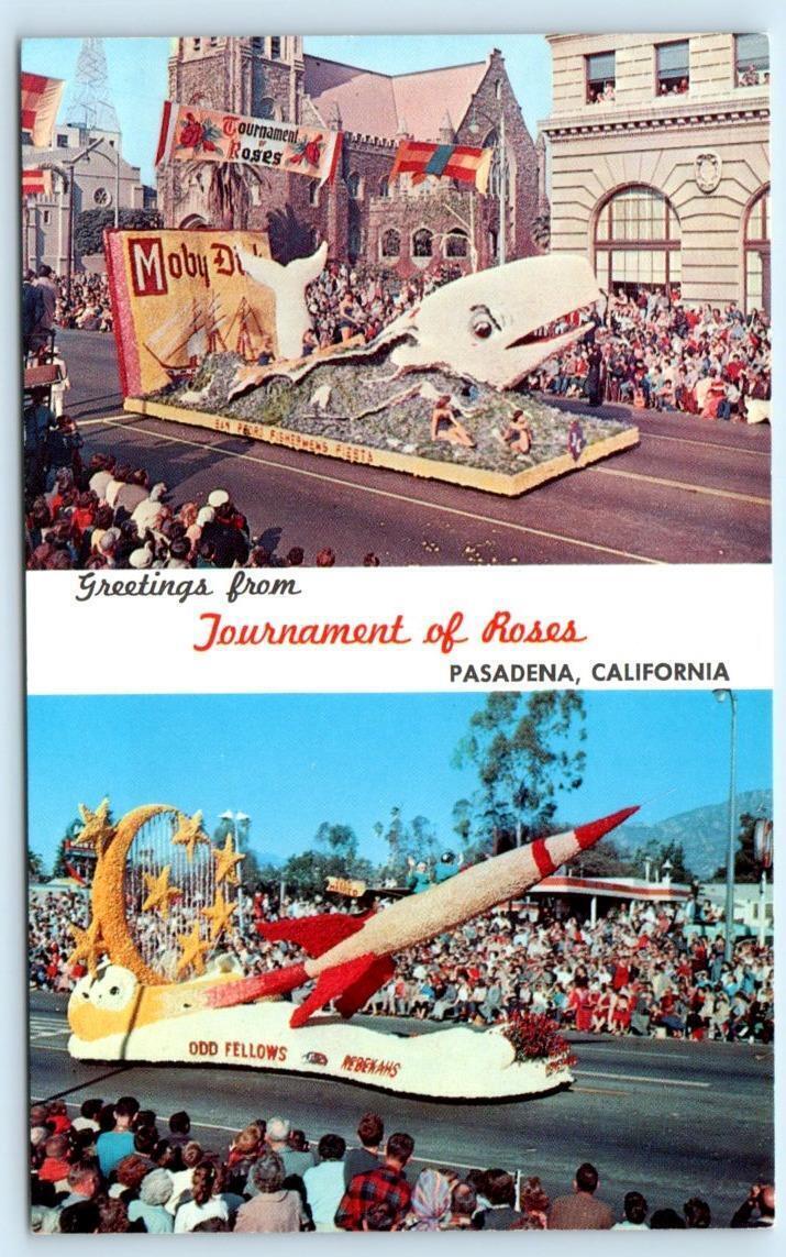 PASADENA, CA ~ Odd Fellows Float ROSE PARADE Moby Dick c1960s Rocket Postcard