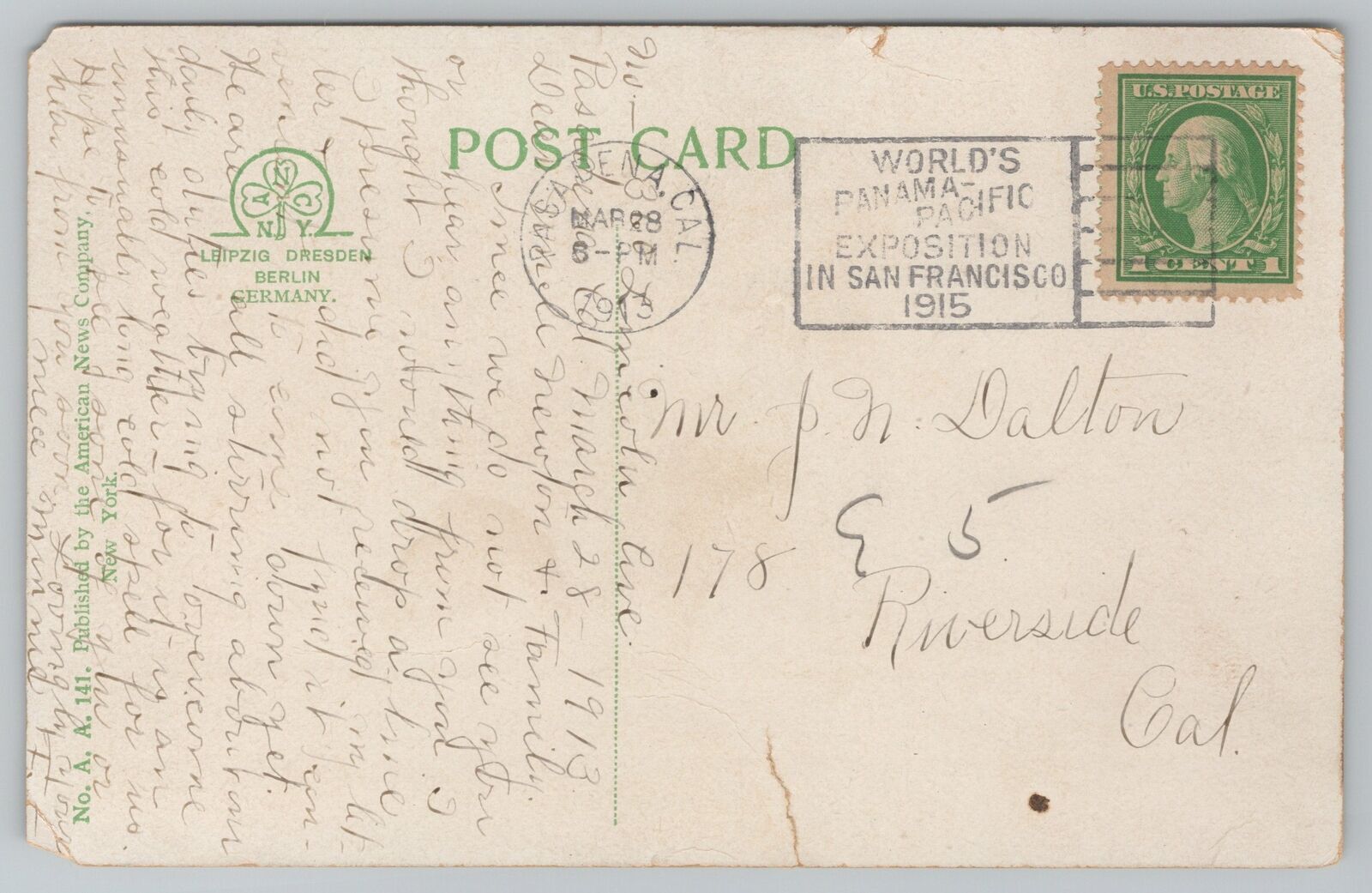 Vintage Postcard listed as "used" because of age. It may or may not be postally used. We provide scans that show all edges and corners. See photos, front and back, for condition.