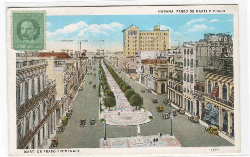 Paseo de Marti o Prado Havana Cuba 1930 postcard